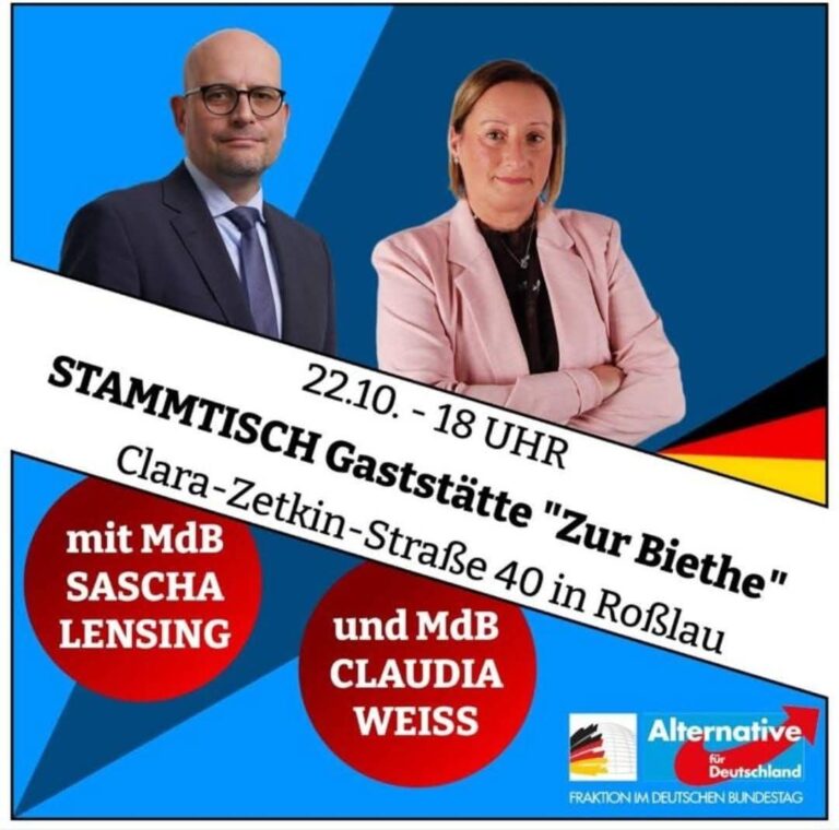 Stammtisch mit den Bundestagsabgeordneten Claudia Weiß und Sascha Lensing.