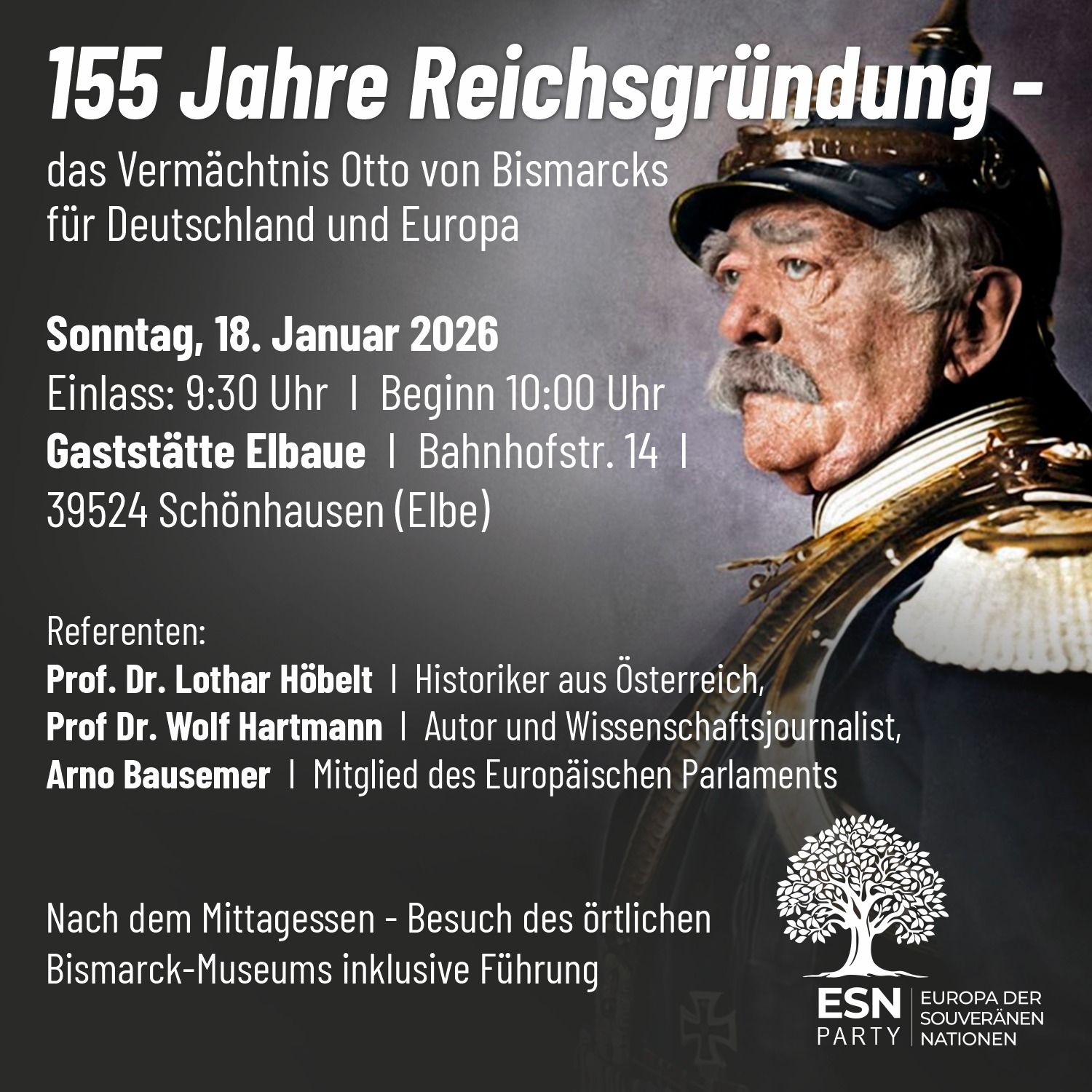 Tagesveranstaltung der ESN-Partei anlässlich des 155. Jahrestages der Reichsgründung 1871 - Das Vermächtnis Otto von Bismarcks für Deutschland und Europa.